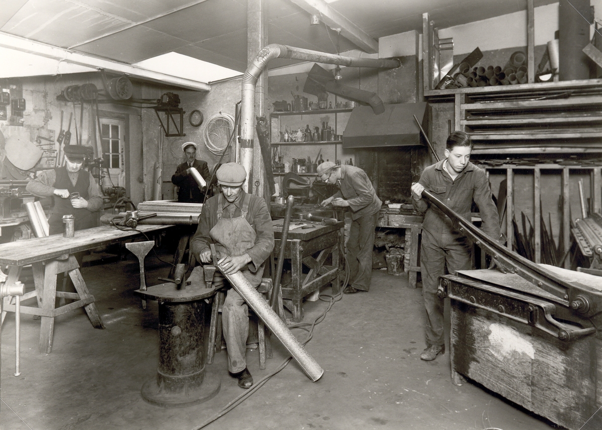 Interiör från Rydströms plåtslageri på Östra Sjögatan.