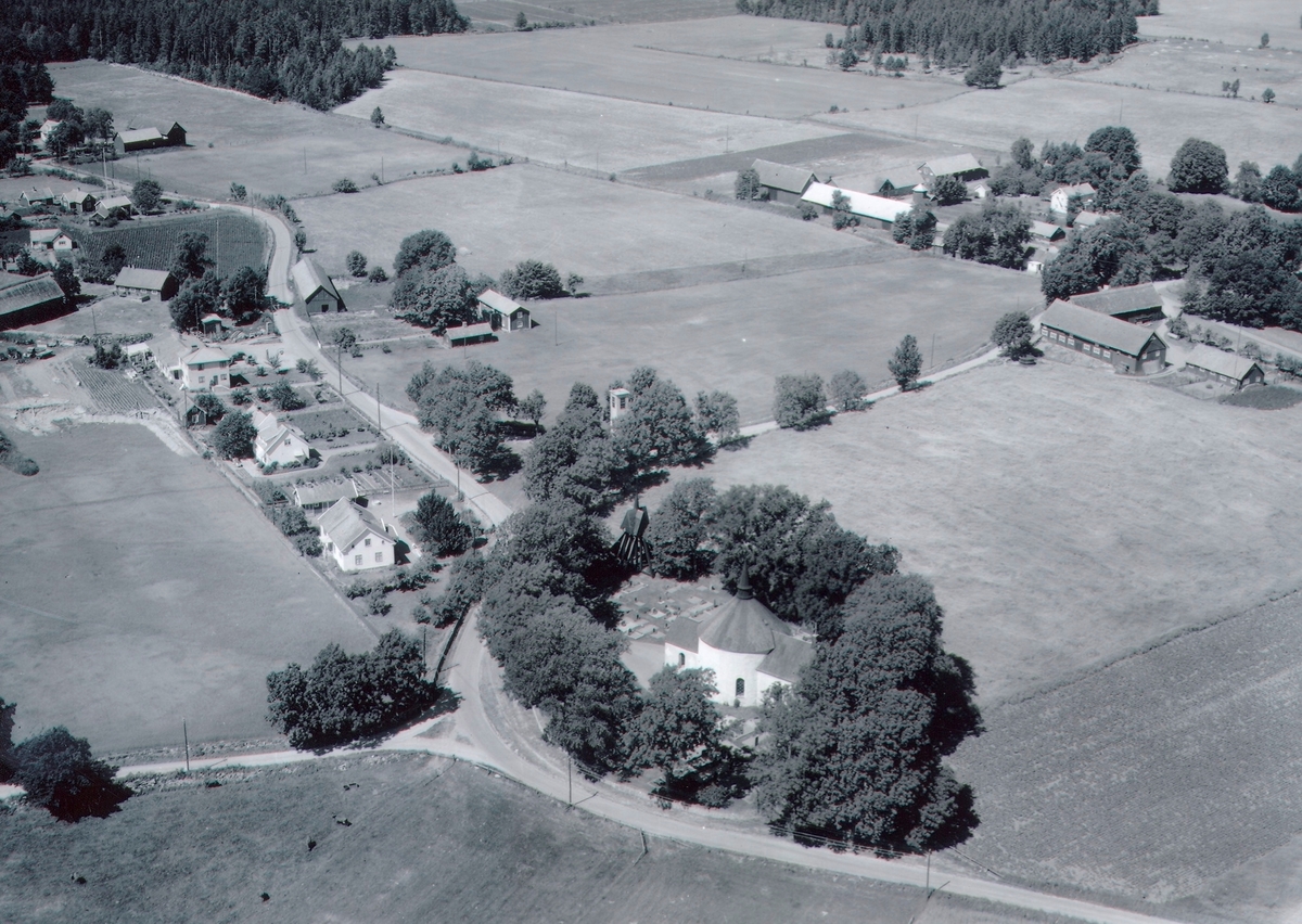 Flygfoto över Voxtorps kyrka.