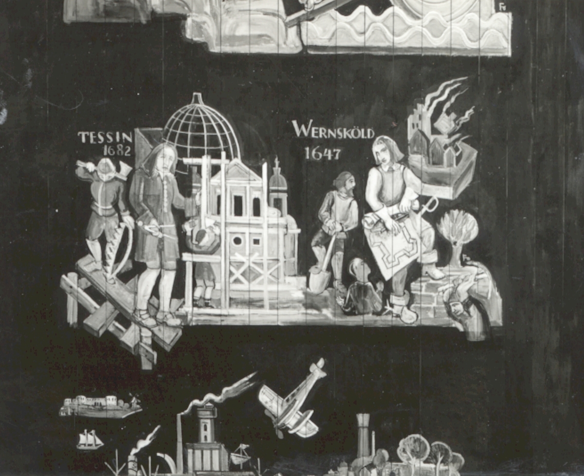 Stagneliusskolan. Dekoration i taket i högtidssalen. Utförd 1933 av E Forseth.