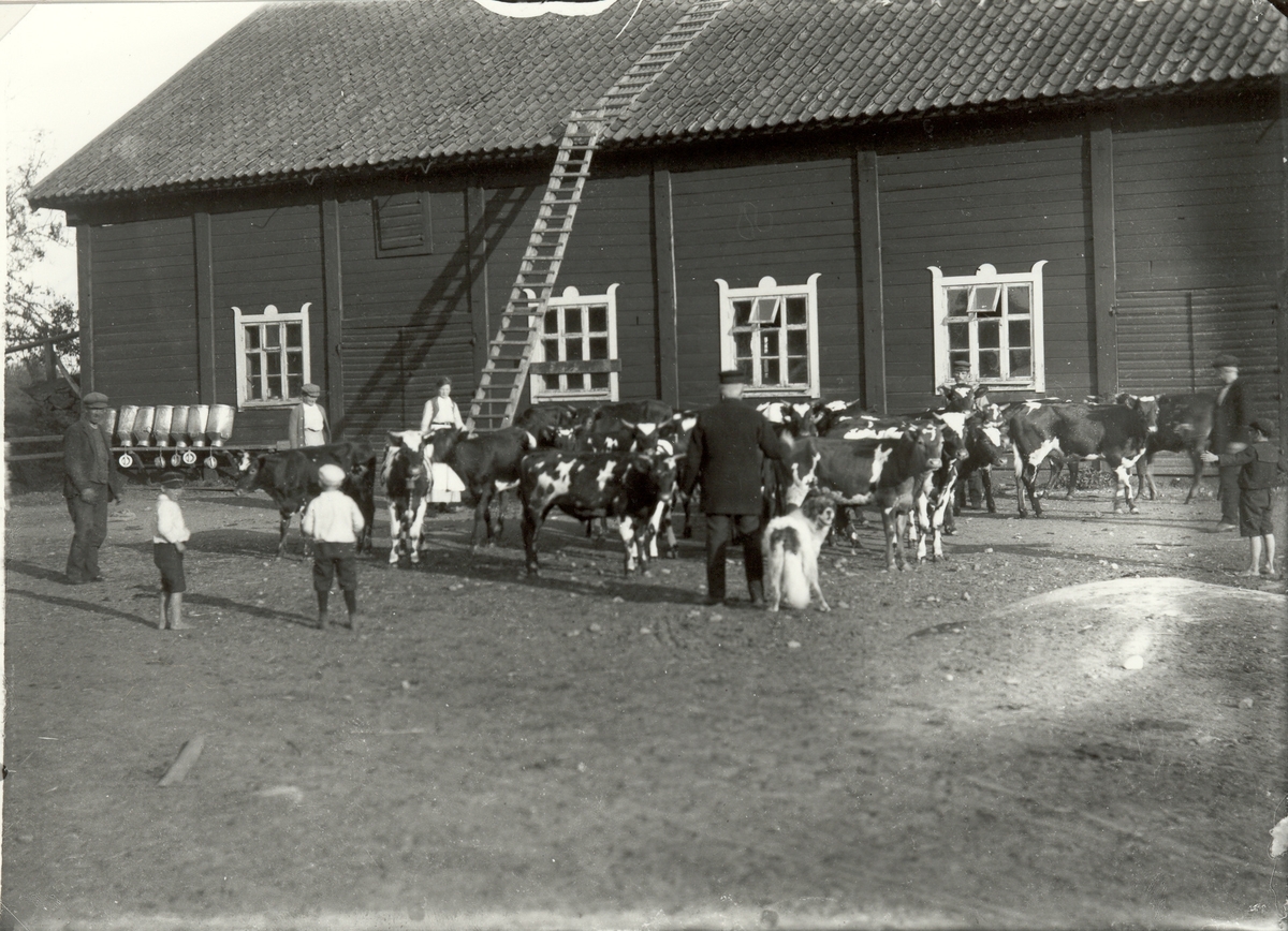 Från Björkhult 1915, kanske är det kalvar som ska släppas ut på bete på våren.