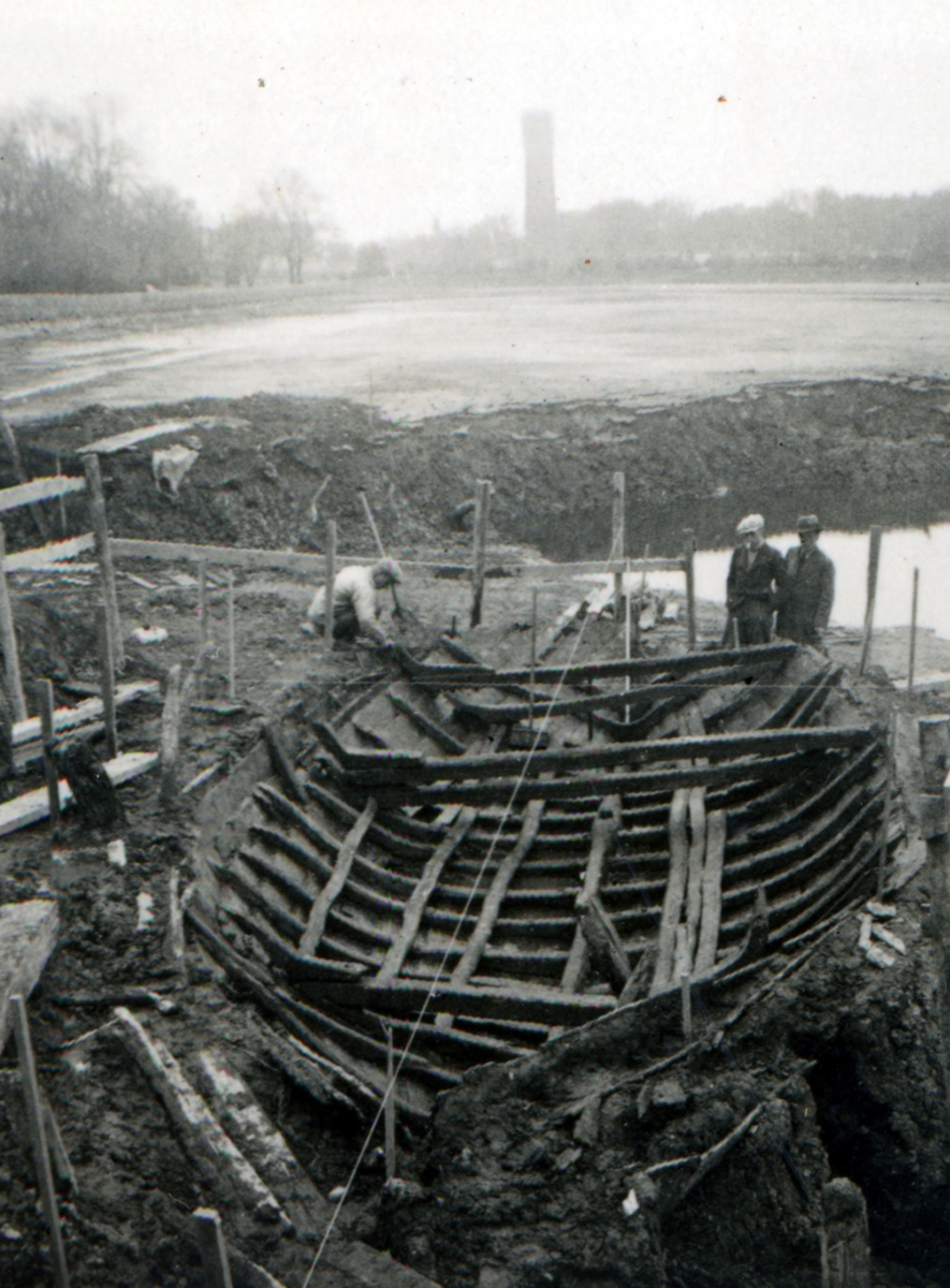 En medeltida båt som påträffades vid utgrävningarna i Slottsfjärden 1932-1934.