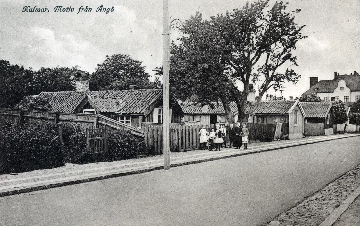 Vykort från Kalmar som visar Sparregatan på Ängö vid 1900-talets början.