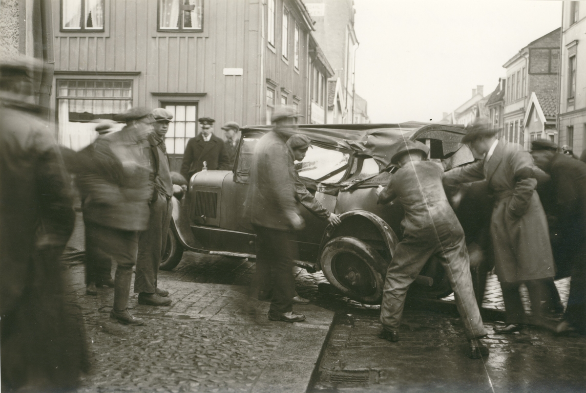 Trafikolycka i Kalmar i slutet av 1920-talet.
