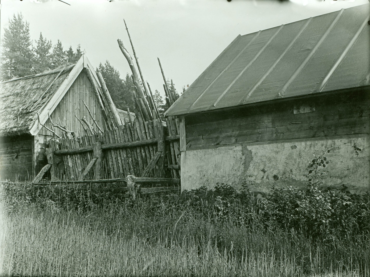 Mellan ladan och boden plank, s.k. "ve-stake"- att ställa upp ved emot". Foto utifrån jämförande ritning.