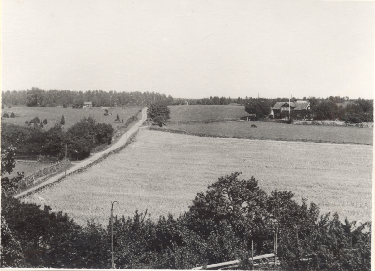 Utsikt från Höge backe mot nordost. Till höger Bomans (ägare Edvin Olsson). Vägen går till Lerhagen.