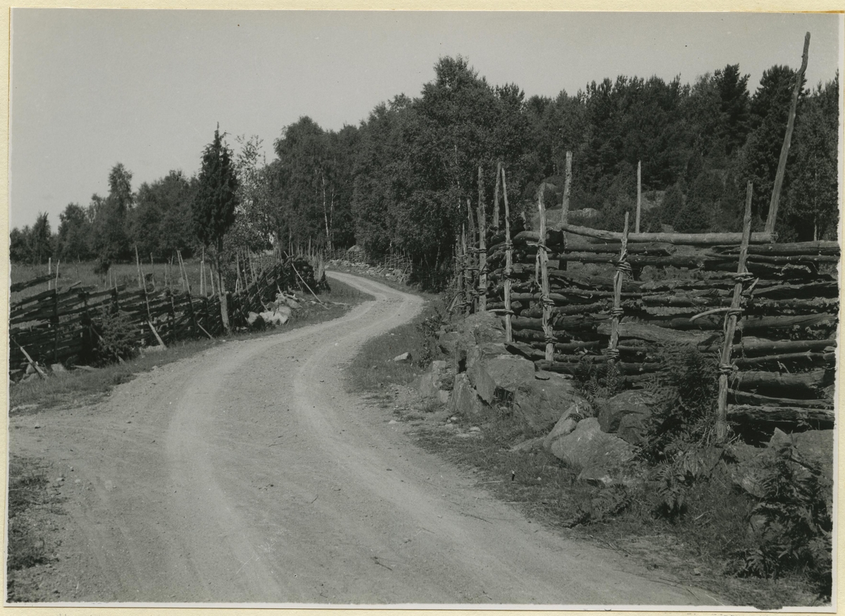Landsvägen mellan Drageryd och Blankebro med gärdesgårdar byggda i låga stenmurar.