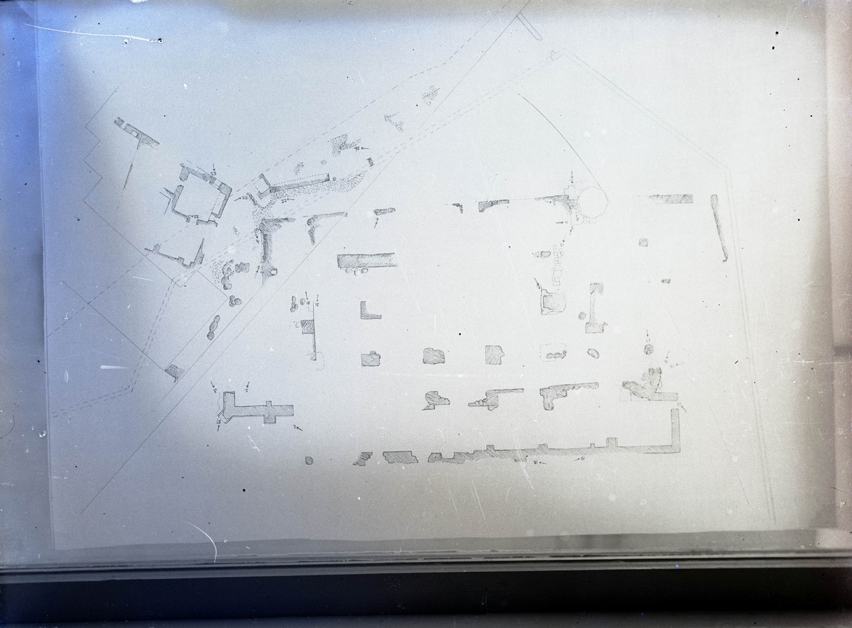 Skiss över grävningarna 1924 av gamla stadskyrkan.