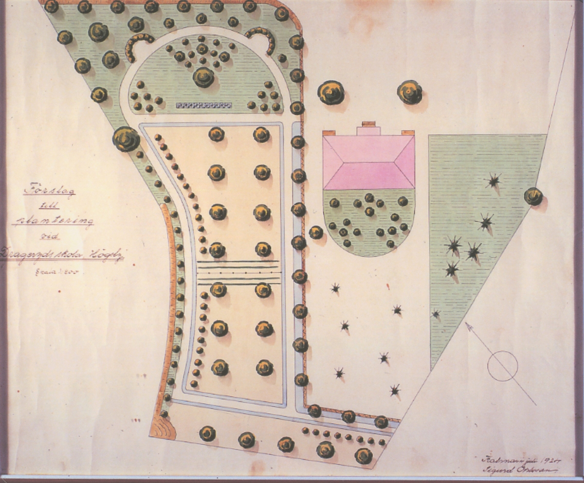 En planritning för förslag till plantering vid Drageryds skola, 1924.