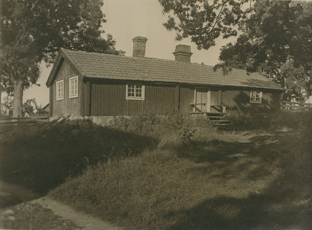 Statarbyggning bakom ladugården. Under teglet torvtak. Källare under huset med ingång bakom svale å den här synliga gaveln.