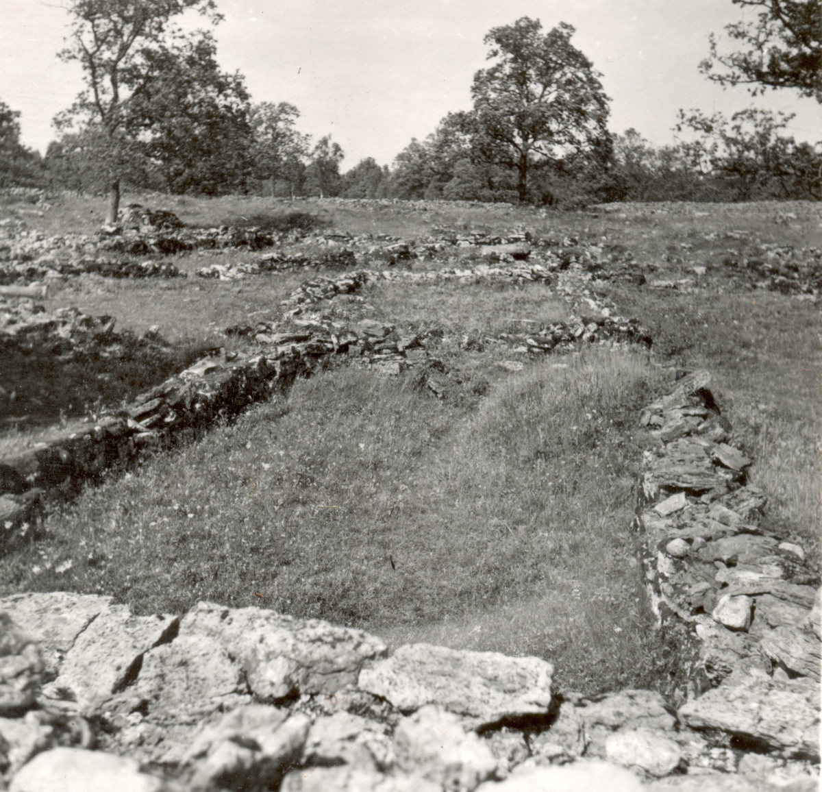 Husgrunder innanför muren på Ismantorps borg.