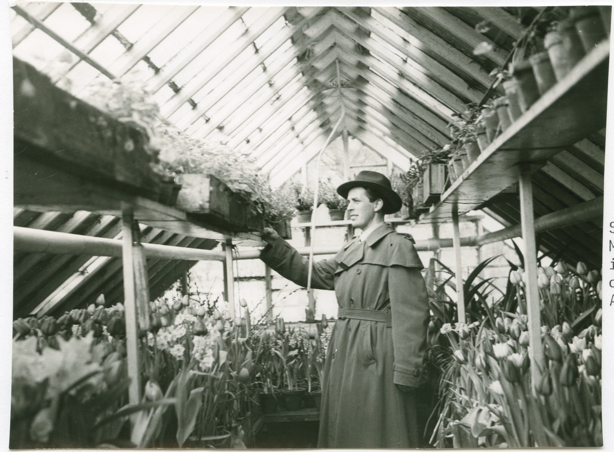 Stadsträdgårdsmästare Magnus Erlandsson i Stadsparkens drivhus 1940-talet.