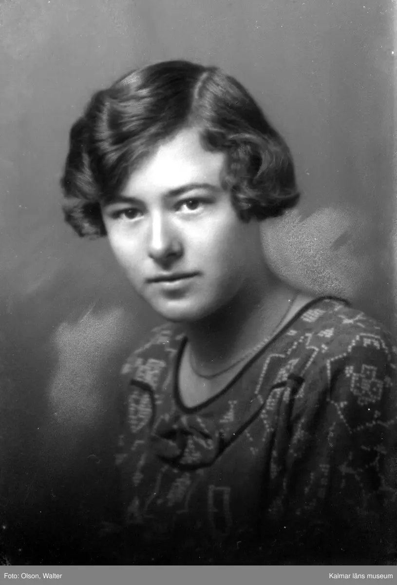 Ateljébild på en kvinna i halsband. Enligt Walter Olsons journal är bilden beställd av Marie Louise Olsson.