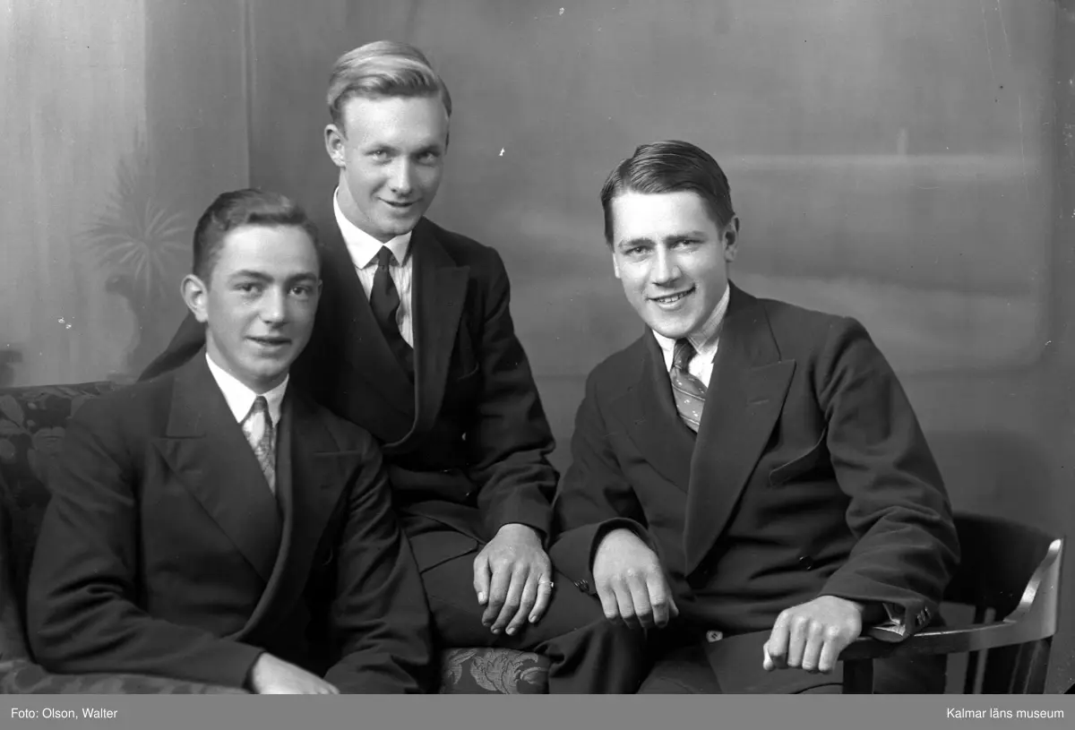 Ateljébild. Enligt Walter Olsons journal är bilden beställd av Åke Pettersson. Kalmar läns museum känner inte till om den personen är avporträtterad.