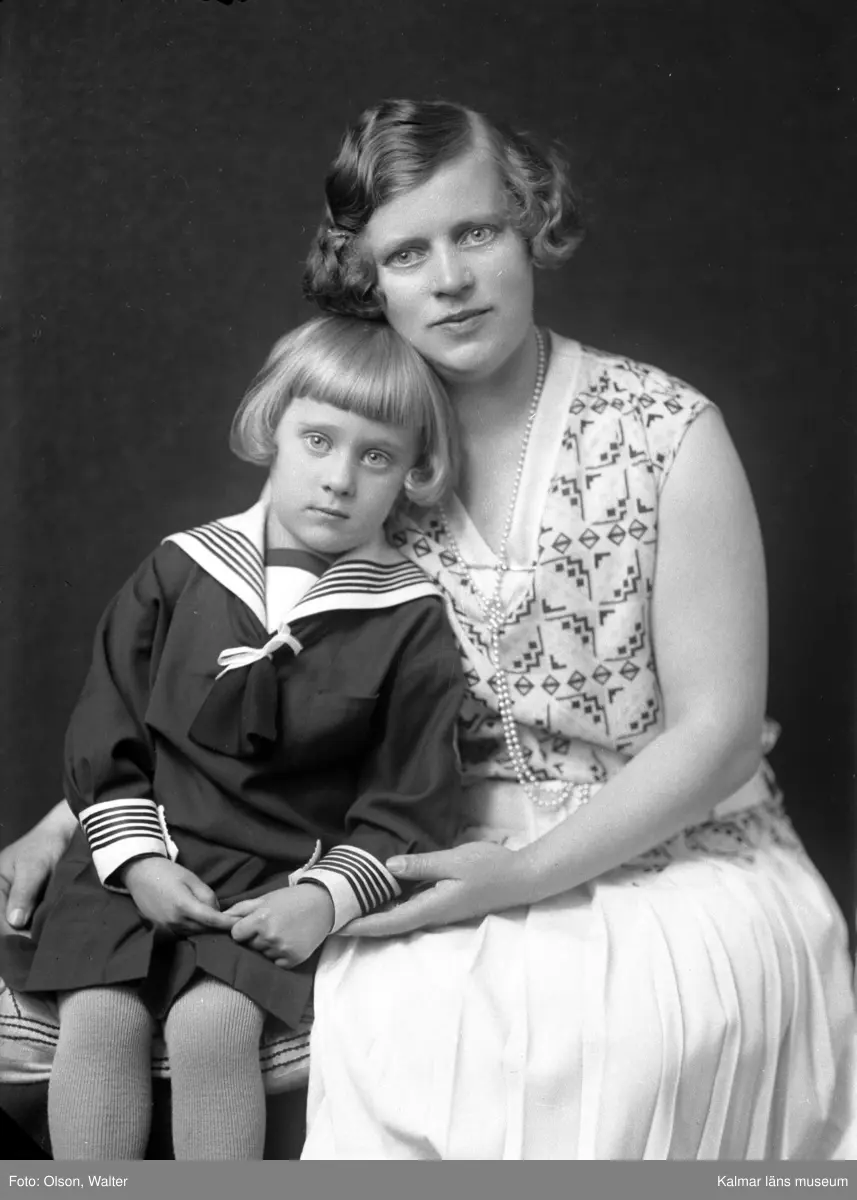 Ateljébild på en flicka och en kvinna. Enligt Walter Olsons journal är bilden beställd av handlare fru Rut Johansson.