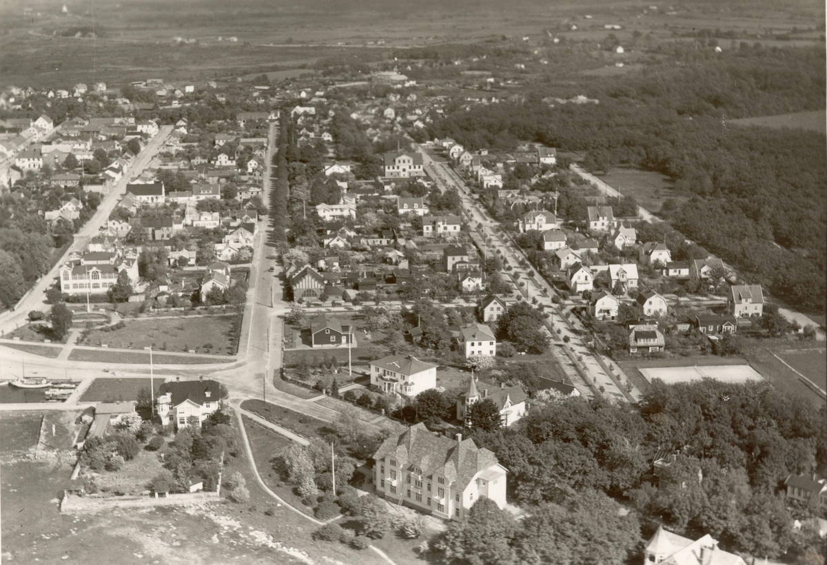 Flygfoto över Borgholms stad.