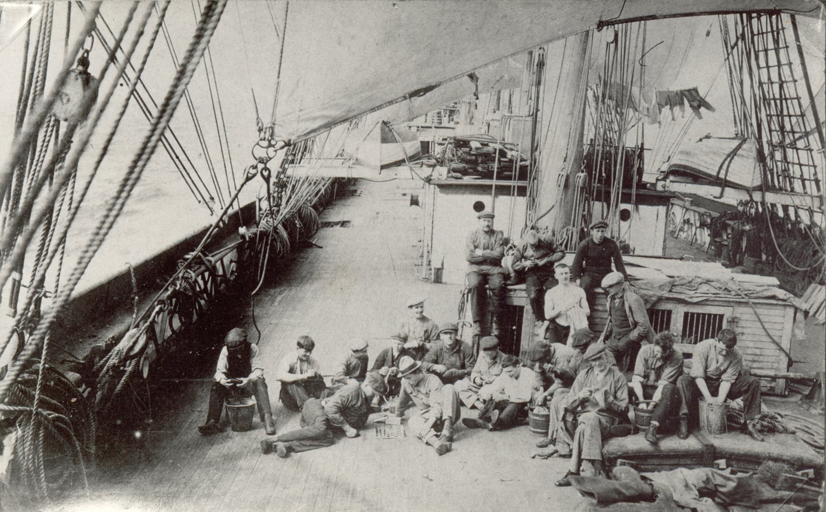En söndag på däck under nordostpassaden. S/S Beatrice under resa 1923. Bilder från fiskare Lindström, Bräkne-Hoby, som var med i besättningen.
