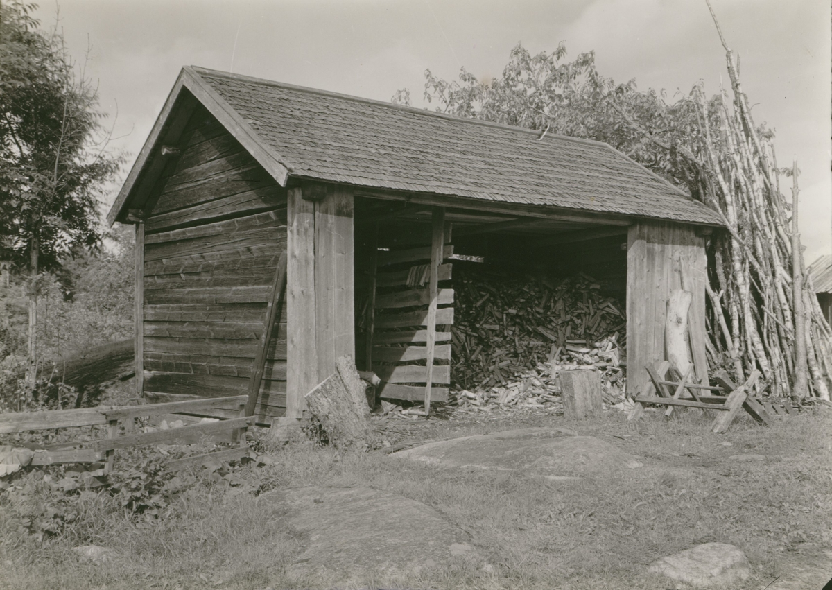 Vedbod. Längd 5,50m. Bredd 3,90m.
