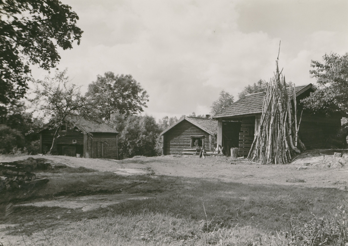 Från vänster visthusbod, lillstuga och vedbod.