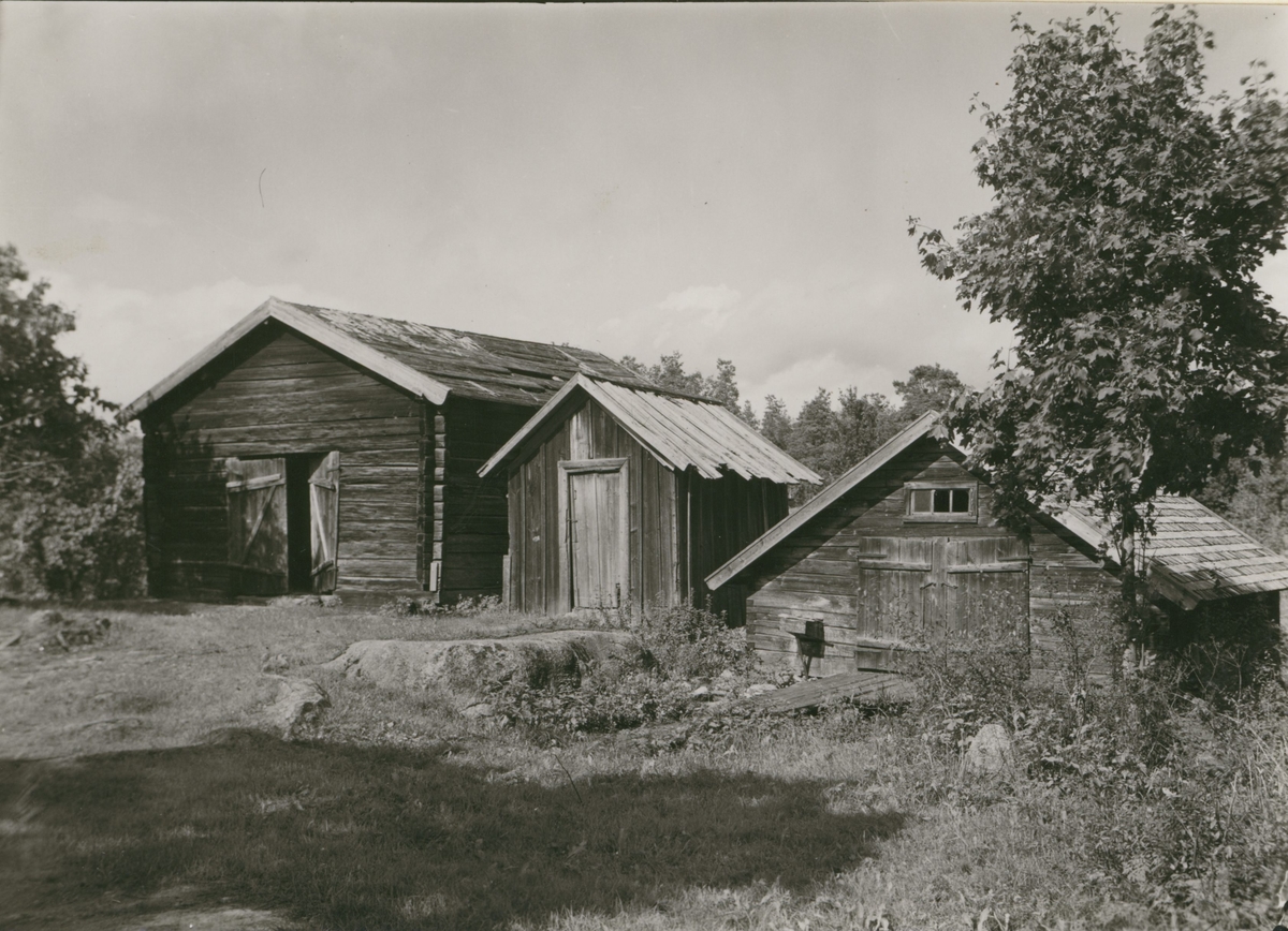 Från vänster vagnsbod, avträde och svinhus. Vagnsboden, längd 6,25m, bredd 4,80m, höjd till takfoten 1,75m. De fina vagnarna hade de där till för 20 år sedan.