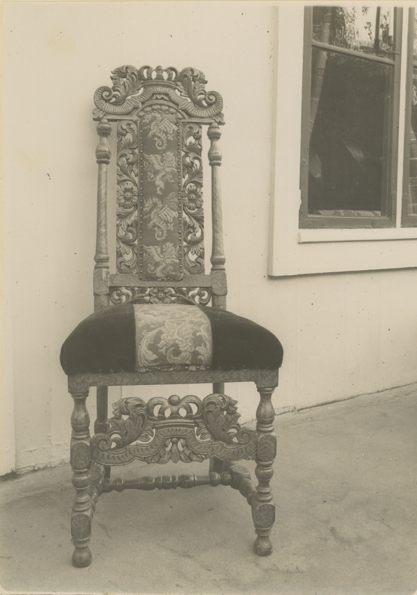 Två stolar i Kristinelunds herrgård. Ska enligt tradition på platsen komma från Borgholms slott. I matsalen i övervåningen.