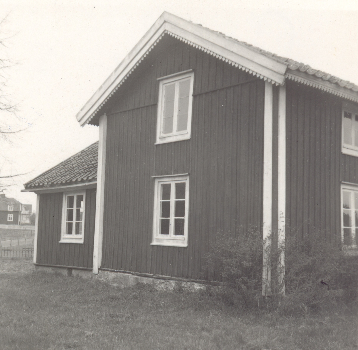 Ett bostadshus med sadeltak och träfasad i Gökalund.