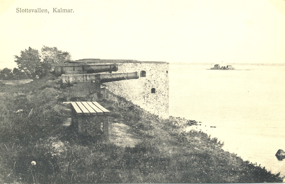 Kalmar Slottt. Utsikt från Slottsvallen med Grimskärs fyr.