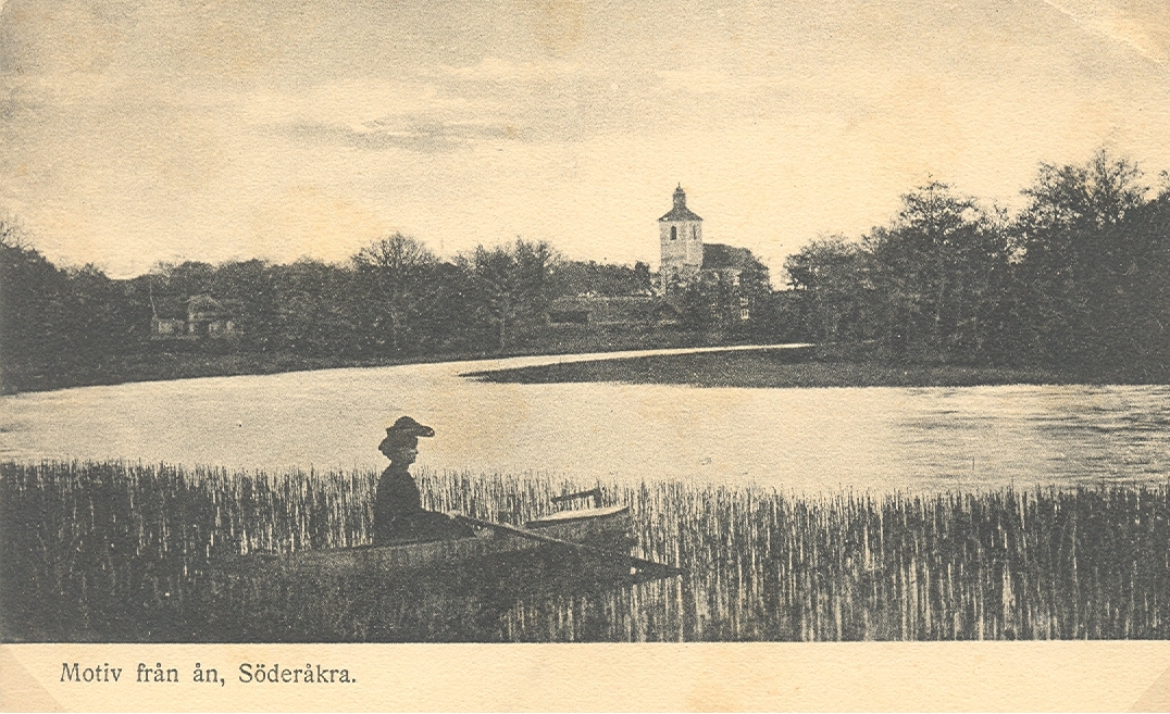 Motiv från ån, Söderåkra med Sofia Magdalena kyrka i bakgrunden.