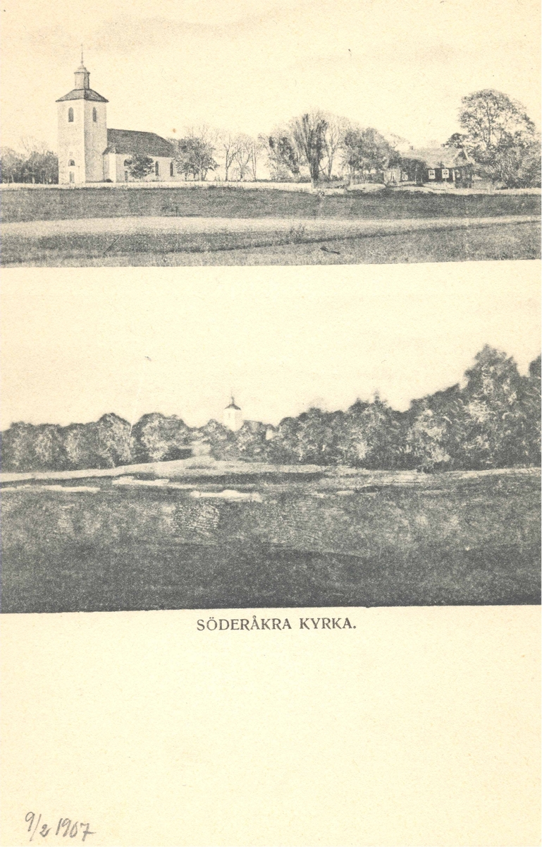 Vykort med motiv från Söderåkra kyrka, även kallad Sofia Magdalena kyrka.