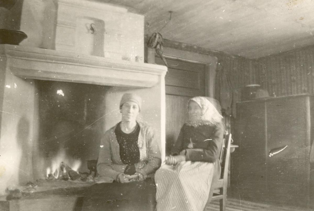 Ann-Karin i Tryhorva, född 1833, död kring 1927. Spisen är ommurad på 1870-talet. Ann-Karin är kvinnan till höger på fotot.