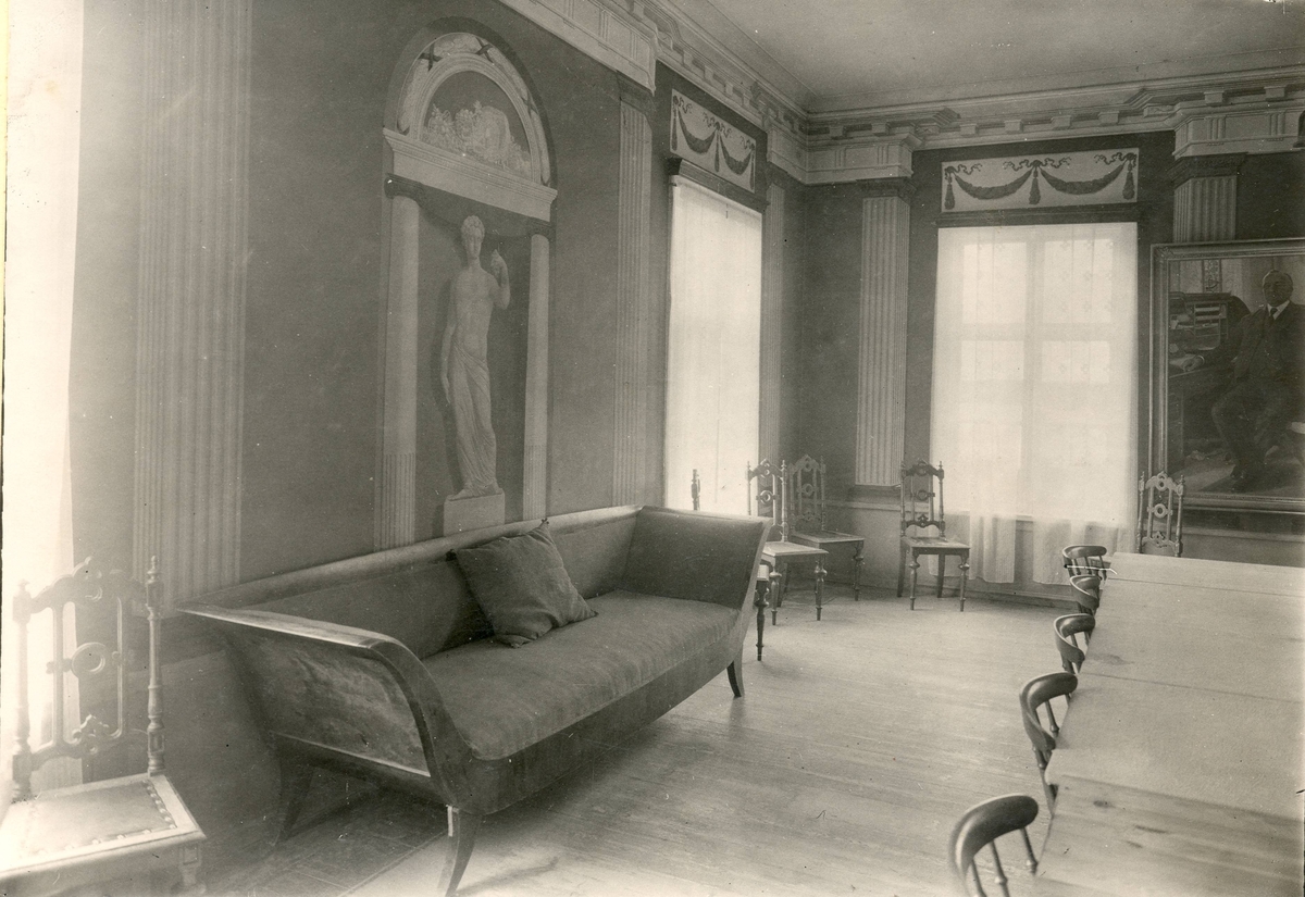 Matsalen i övervåningen (rum nio). Soffa av björk. Sedan gammalt funnits på gården, men stod ej där på majorskans tid utan på långsidan.