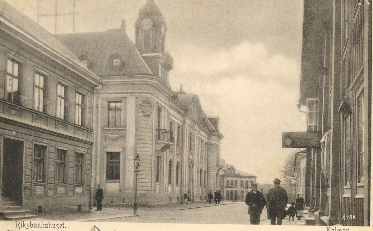 Handskriven text med pil:"Urmakare Lundgren", "kapten Anderssons hus"