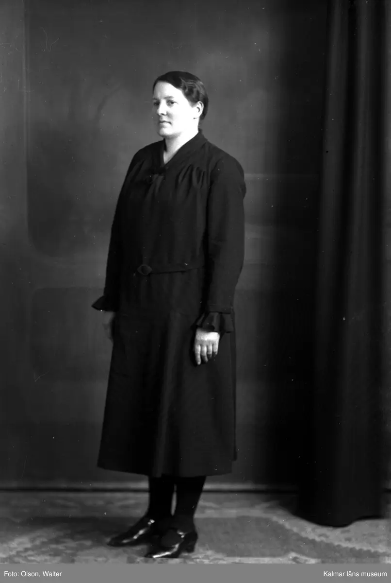 Ateljébild på en kvinna ifrån Igelösa gård. Enligt Walter Olsons journal är bilden beställd av fröken Lotten Olsson.