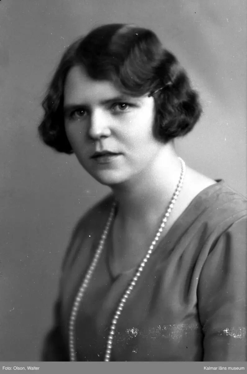 Ateljébild på en kvinna i halsband. Enligt Walter Olsons journal är bilden beställd av fröken Sonja Johansson.