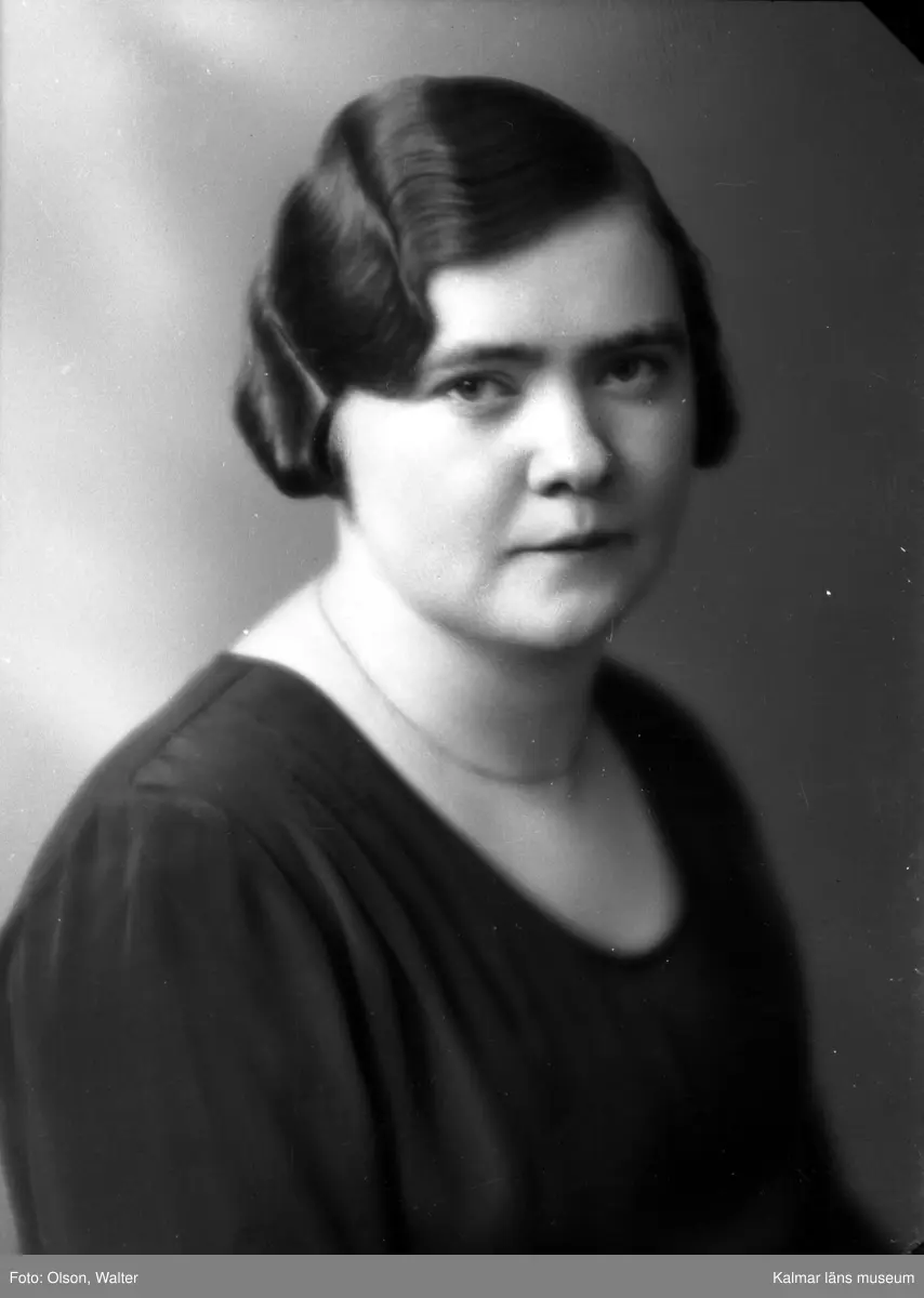 Ateljébild på en kvinna i halsband. Enligt Walter Olsons journal är bilden beställd av fröken Vanja Johansson.