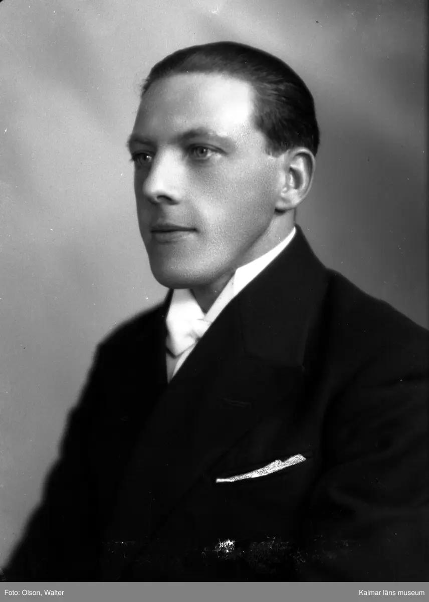 Ateljébild på en man i kavaj. Enligt Walter Olsons journal är bilden beställd av Karl Vallin.
