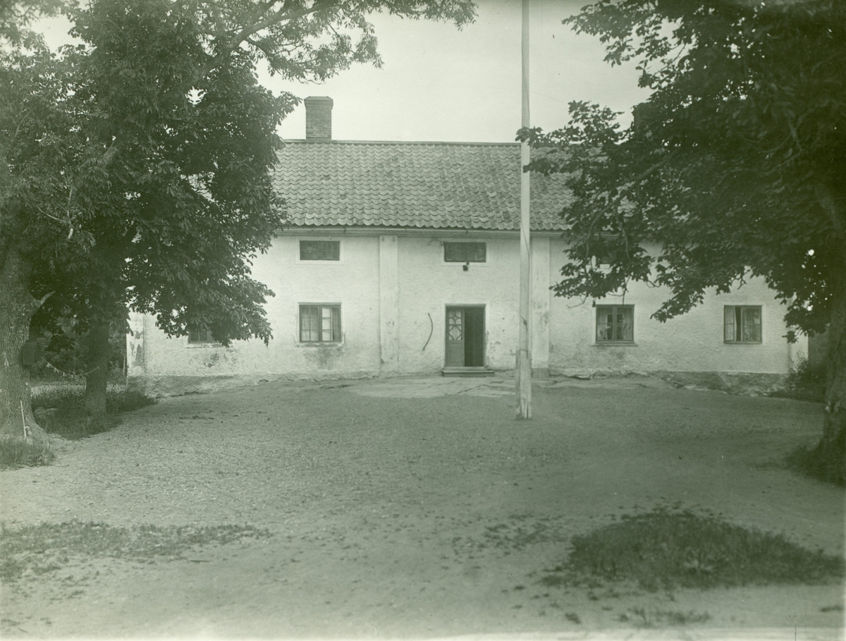 Spritputsat gammalt trähus, huvudbyggning på gården. Kvadratiska smårutiga fönster. I förstugan dörrbeslag av 1600 -talstyp. Ombyggd 1952.