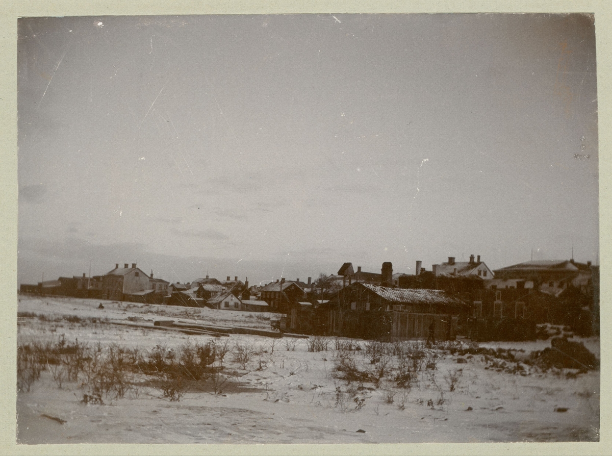 Kalmar i närheten av Ängöbron 1896. På den här bilden kan man ana en del av det armod som utmärkte Ängö.