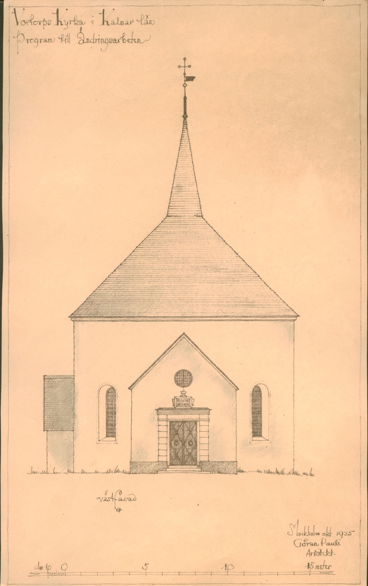 Voxtorps kyrka i Kalmar län. Program till ändringsarbeten, västfasad.