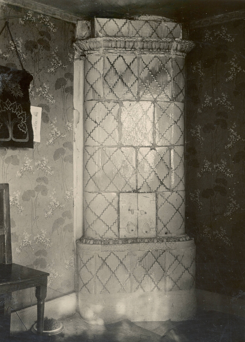 Per Johnssons gård. Kakelugn på nedre våningen. Färg grön och gul.