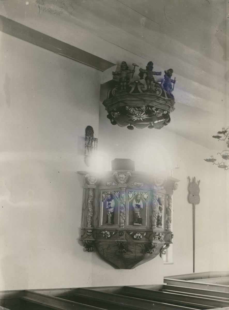 Predikstolen i Tveta kyrka efter restaureringen 1933.