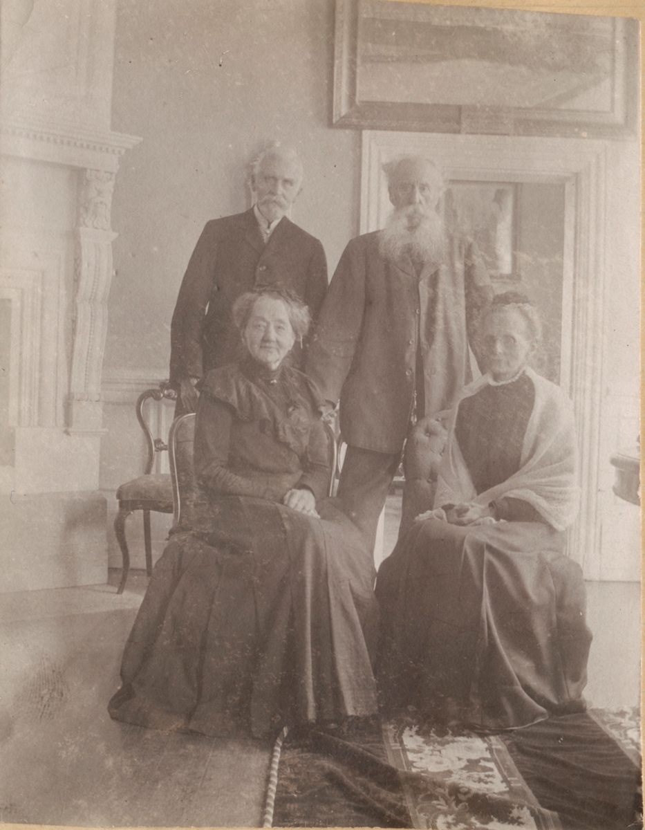 Stående, från vänster kammarherre Stang och troligen greve (talman) Gustaf Sparre (1834-1914). Sittande från vänster, troligen grevinnan Augusta Thott (1830-1912) och grevinnan Sofia Gustava Sparre av Sövdeborg (1836-1920), gift med greve Gustaf Sparre.