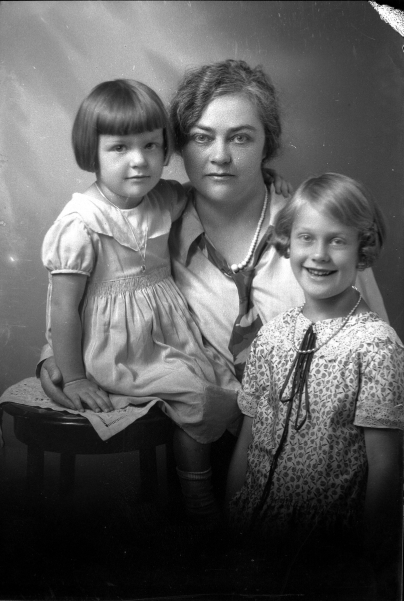 Porträtt på en kvinna och två flickor. Beställare: Byggmästare Axel Olsson, Färjestaden.