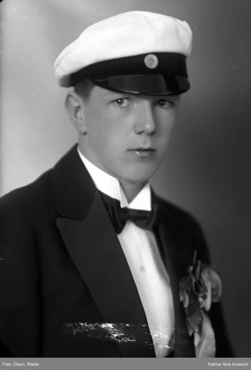 Ateljébild på en man som har tagit studenten. Enligt Walter Olsons journal är bilden beställd av Torsten Björkman.