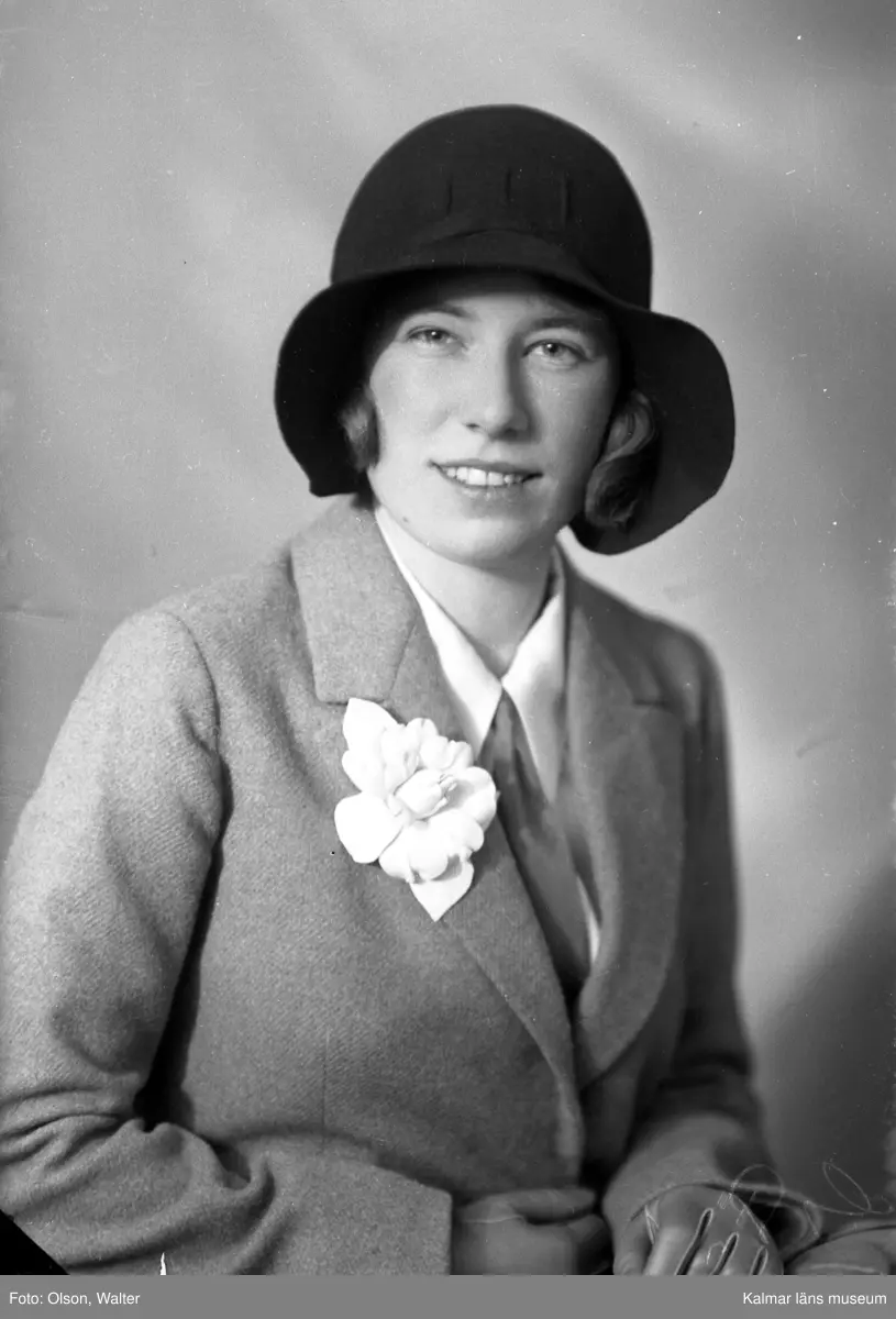 Ateljébild på en kvinna. Enligt Walter Olsons journal är bilden beställd av fröken Birgit Ek.