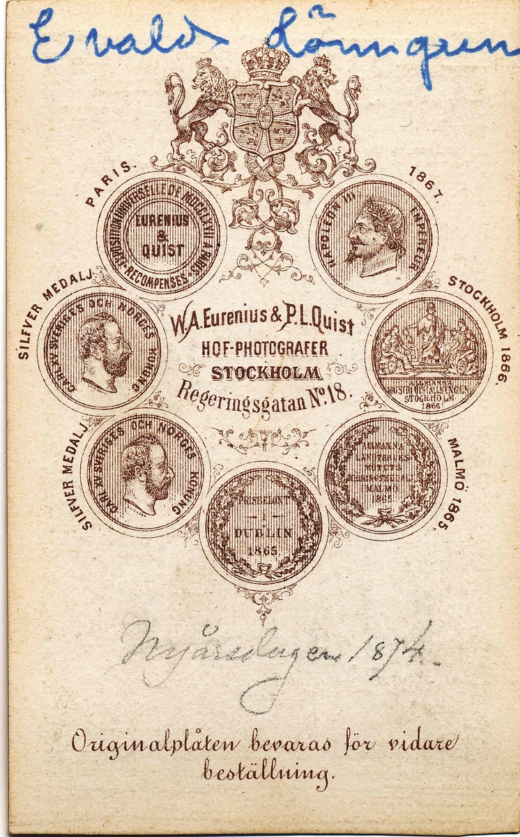 Handskriven text på fotots baksida: "Evald Lönngren, nyårsdagen 1874."