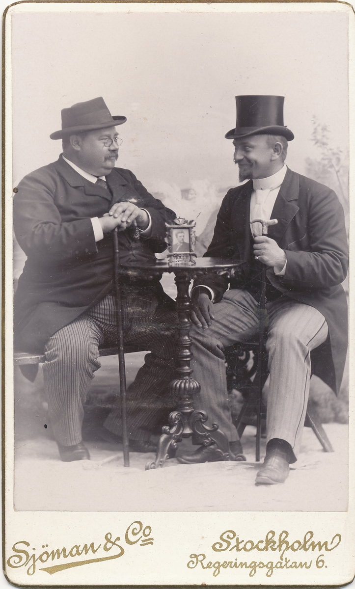 Handskriven text i fotoalbumet, under fotot: "Morbror Frithiof och en rysk vän Hagman i St... [resten av texten är bortriven].