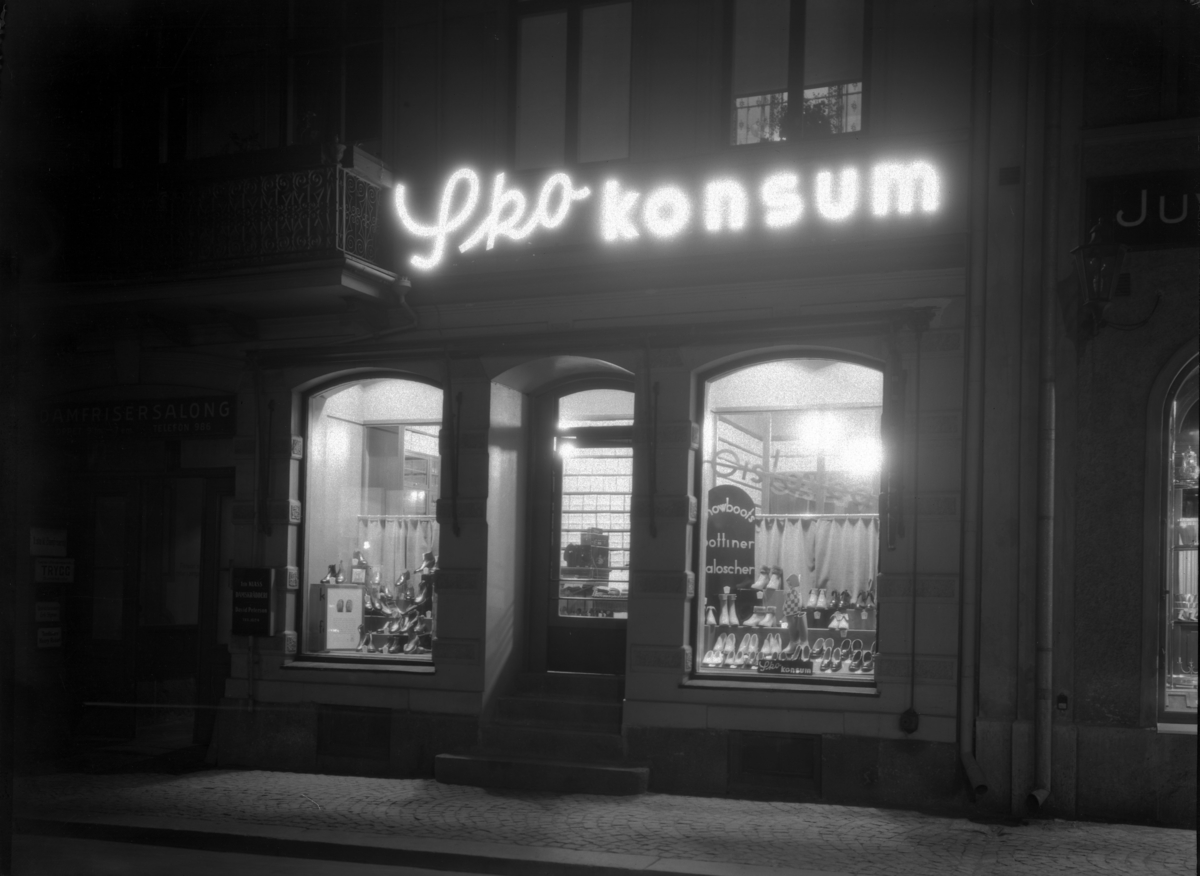 Skyltfönster på sko-Konsum på Kvarnholmen.