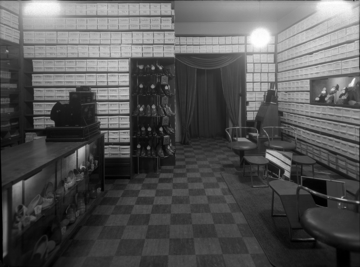 Interiör med skor och kartonger på sko-Konsum.