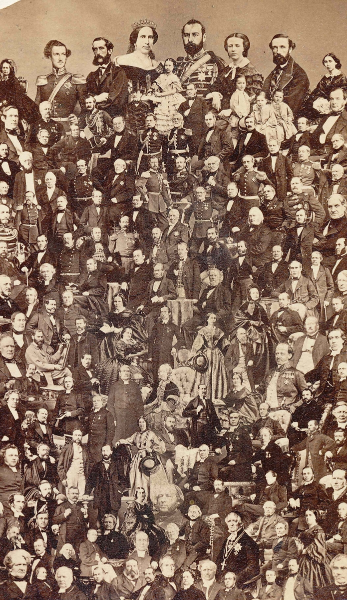 Porträttcollage. Överst i mitten syns Karl XV och drottning Lovisa.