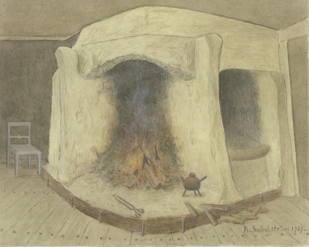 Spis i den gamle "Trägårdsmästaren" . Blott en hastig skiss. Saken till höger är ingen klosett